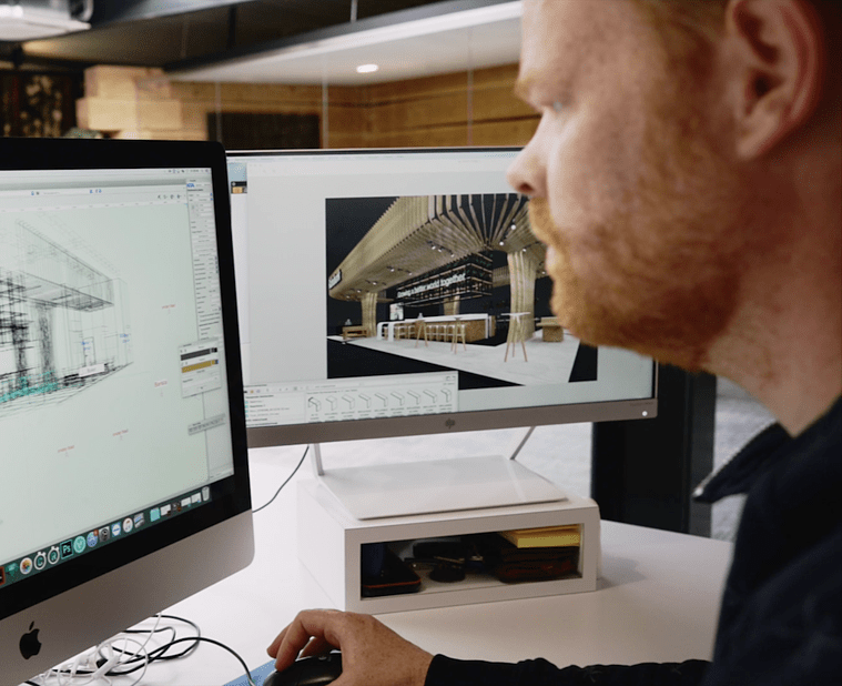 Onze standbouwers zijn gespecialiseerd in houtbouw. Dit betekent dat we voornamelijk hout als materiaal gebruiken. Het mooie van werken met hout is dat het enorm veelzijdig is en het zich uitstekend leent voor standbouw op maat. We hebben ervaren vakmensen in dienst die als geen ander weten hoe ze hout kunnen verwerken in het stand design. We doen alles in onze eigen werkplaats om maximale kwaliteit te kunnen garanderen.