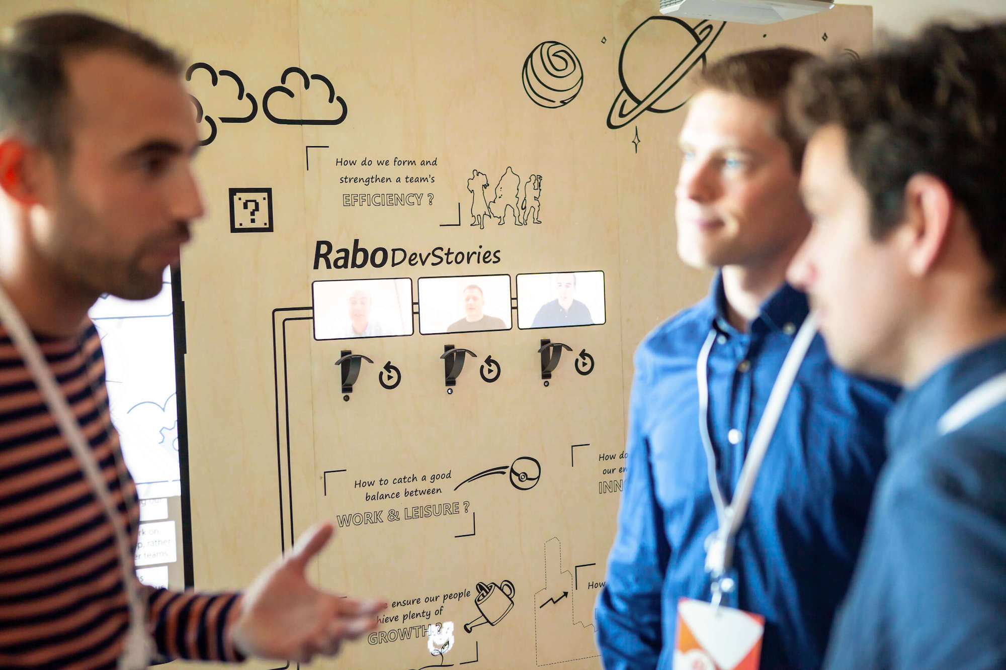 An row stand is an exhibition stand that is positioned between two other stands. This is the most common exhibition stand that can be found at trade shows. The row stand has one open side, which is adjacent to the aisle. Tradeshow visitors and the stand crew can visit and leave the stand via this side. The other three sides of the row stand are closed. These walls are generally used for logos, screens, banners or canvases.